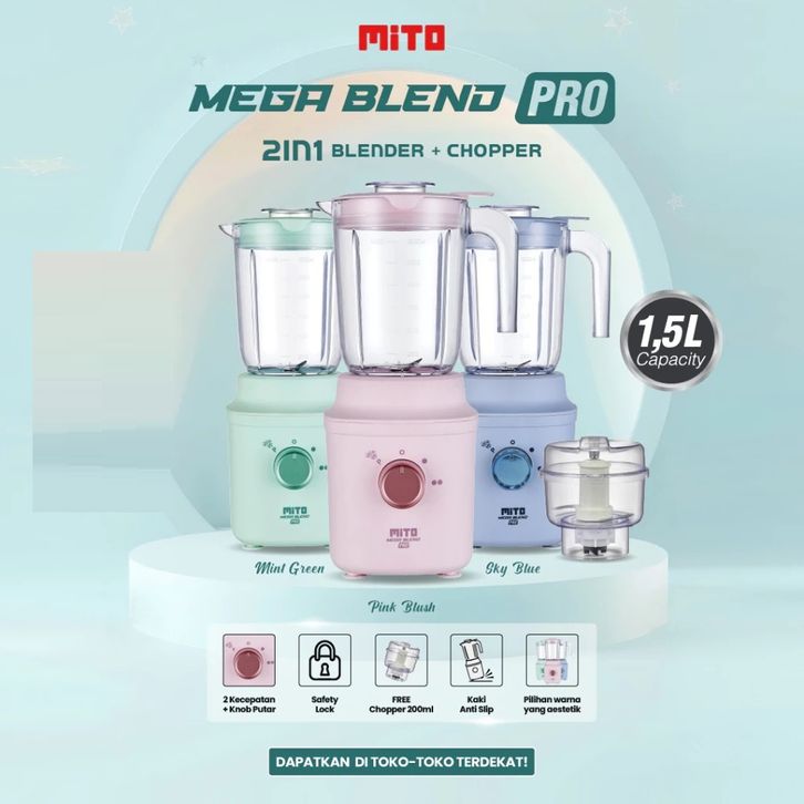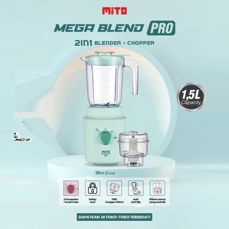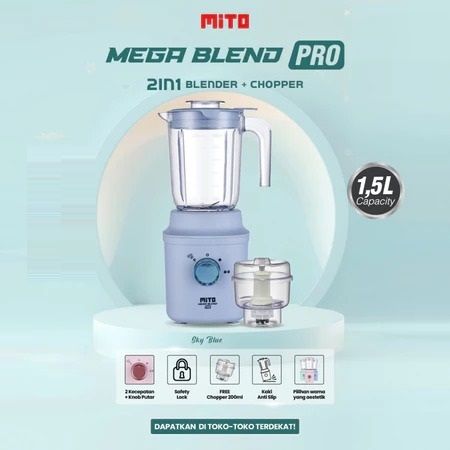 MEGA BLEND PRO BL300 - 1,5L Jar 2 Tingkat Kecepatan + Pulse + 6 Mata