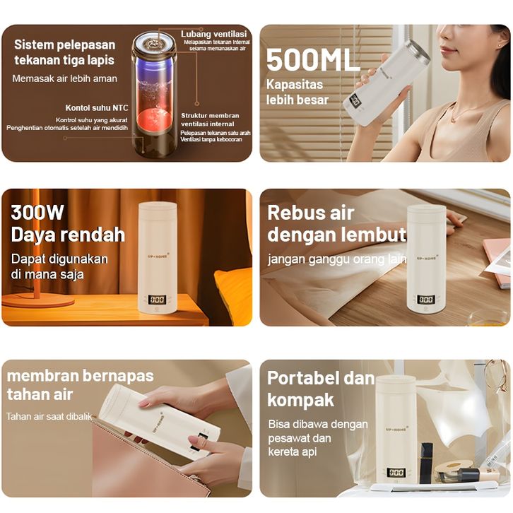 {DISKON} TUMBLER STAINLESS TAHAN DINGIN DAN PANAS UPHOME Pemanas Air Listrik Electric 500Ml LED TUMBLER PANAS DINGIN