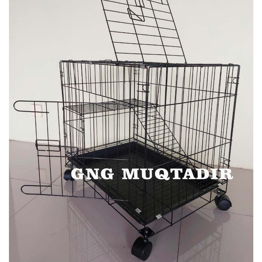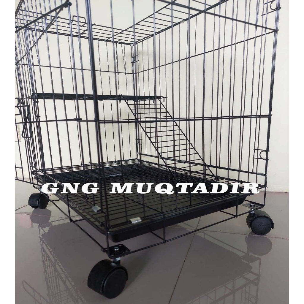 [PROMO] kandang kucing tingkat plus roda bahan besi tebal dan kokoh cat coating tahan terhadap cuaca ukuran 60x40x50 cm