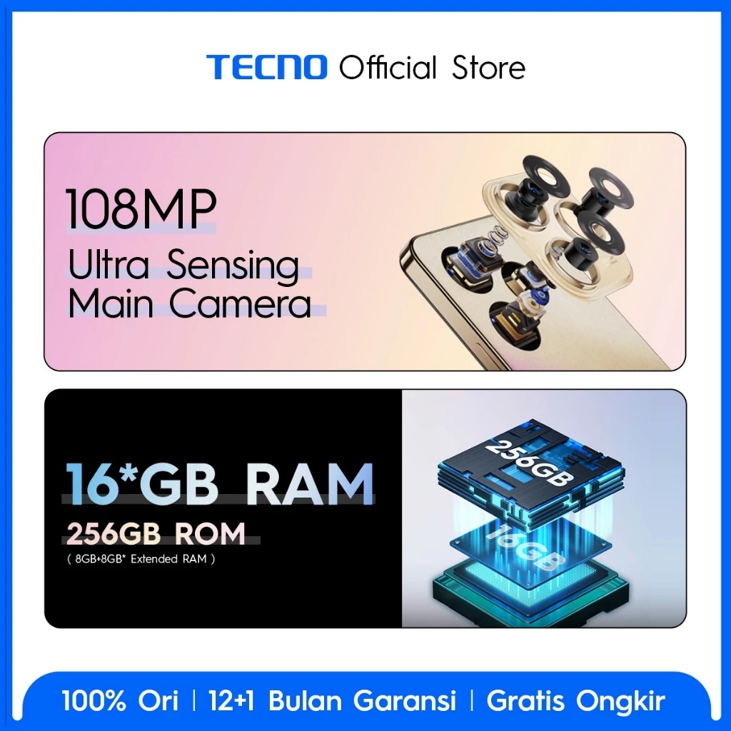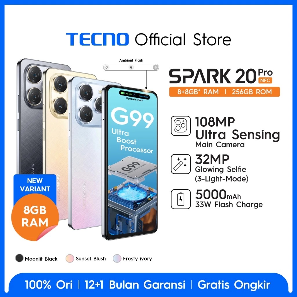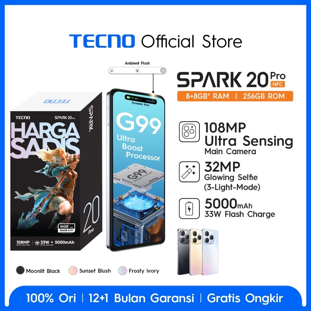 Tecno Spark 20 Pro Nfc 8gb+256gb 108mp+32mp 6,78" Ips Fhd+ 120hz Stereo Dual Speaker 5000mah+33w Handphone Tanpa Dp