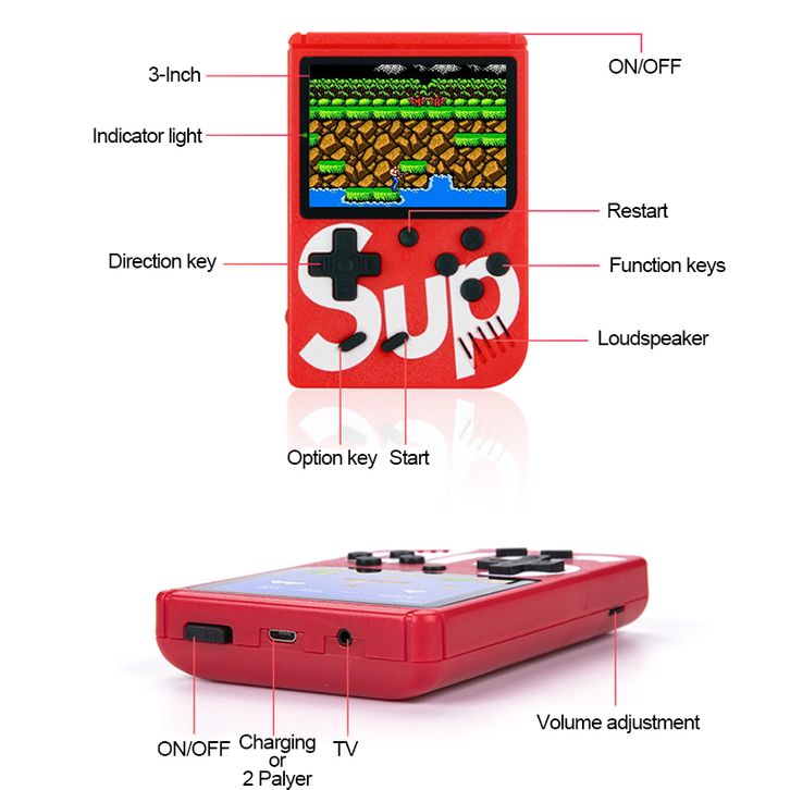 Gameboy Retro 500 in 1 Games Mini Portabel SUPRIME Red Series Console Games 1 PLAYER / 2 PLAYER Premium Free Ongkir