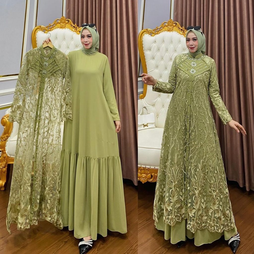 [ GAMIS JUMBO ] Inara Dress Set Outer Brukat Mix Ceruty Babydoll Premium Gamis Pesta Wanita Jumbo M L XL XXL 3XL 4XL
