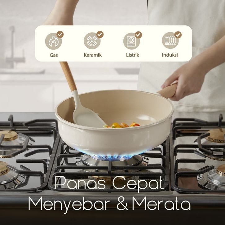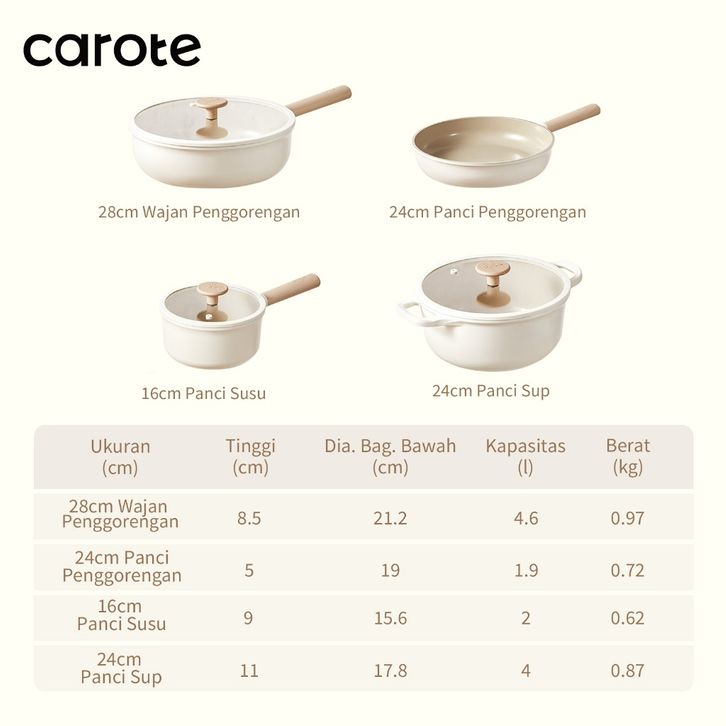 Wajan Set Anti Lengket Carote Keramik Granit Putih 7PCS Original Official Store