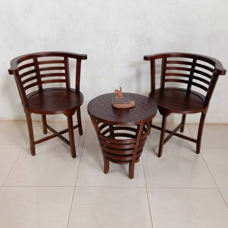 kursi teras depan rumah Kursi Teras Jati Solid Kursi Teras Minimalis Betawi Amerika Jati Set. 2+1 TERLARIS