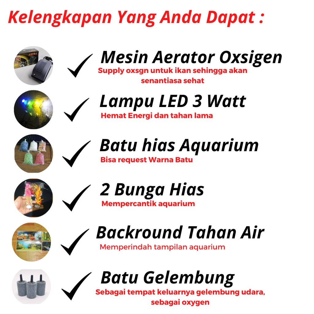 [PROMO] 1 Set lengkap Aquarium mini plus mesin oxygn glembung dan lampu LED 3 Watt (M02)