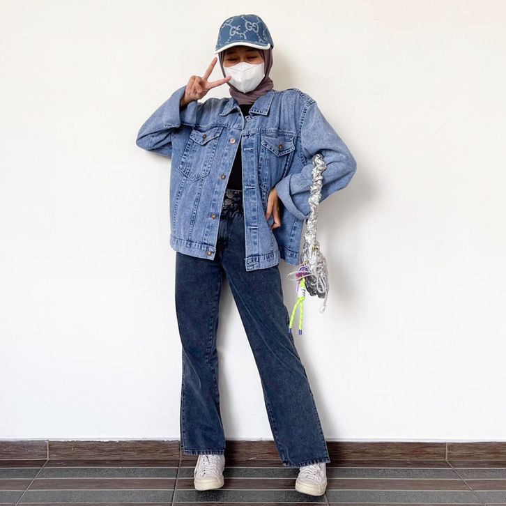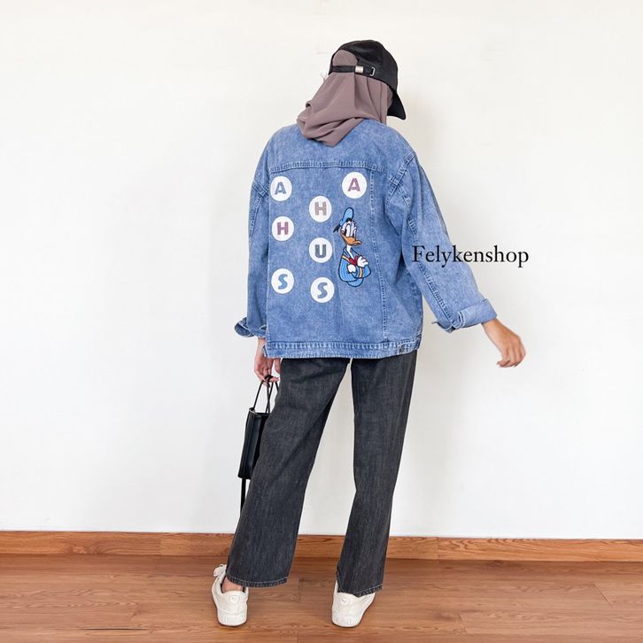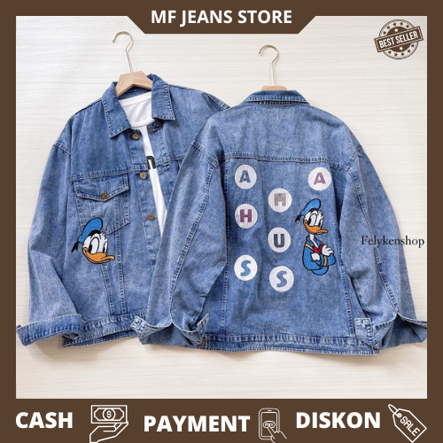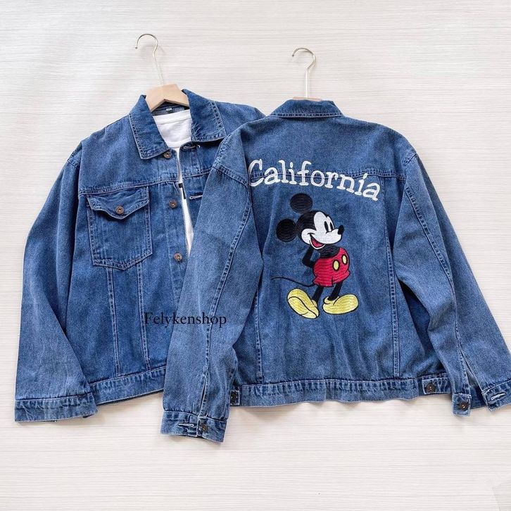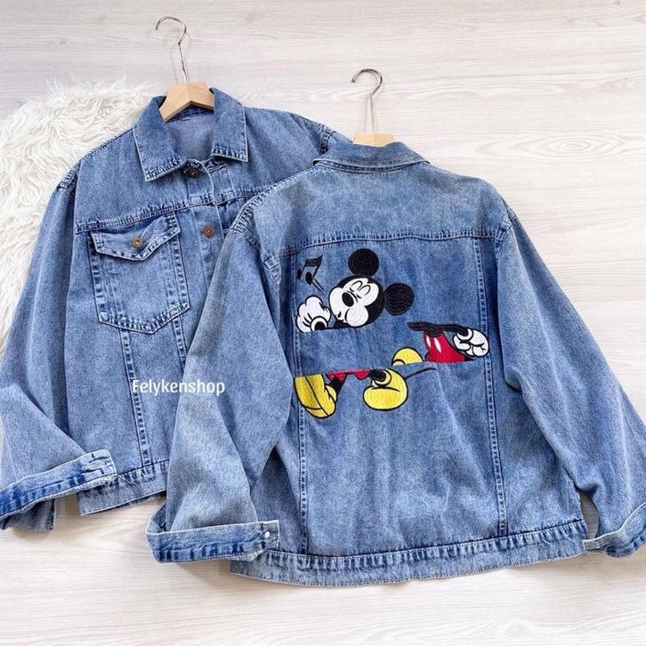 Oversize Jaket Jeans Bordir Kode MP 70 Jaket Jeans Wanita Korean Style Kekinian Jaket Denim Wanita Bordir Mickey Mouse