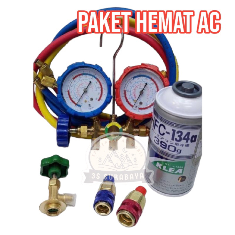 Paket Hemat Ac Mobil Manifold Selang Quick Coupler Freon Kaleng R134