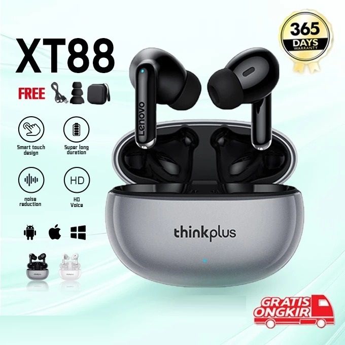 Lenovo ERAZER XT88 TWS Headset Bluetooth Earbuds Desain buram imitasi Panggilan HiFi Stereo bass