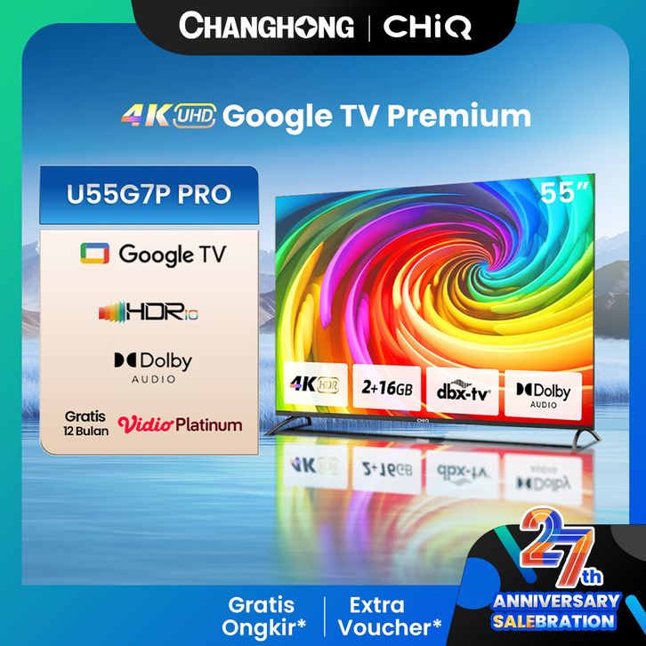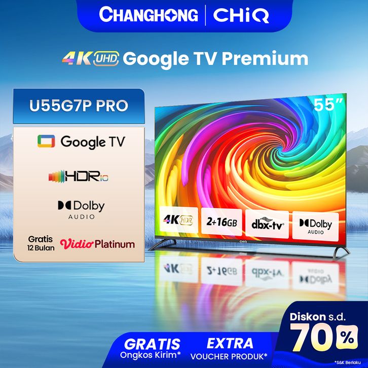 【Google TV】CHiQ 55 inch Smart TV 4K UHD-HDR10 DBX Dolby Audio Google Assistant Netflix Youtube Digital TV (U55G7P Pro)
