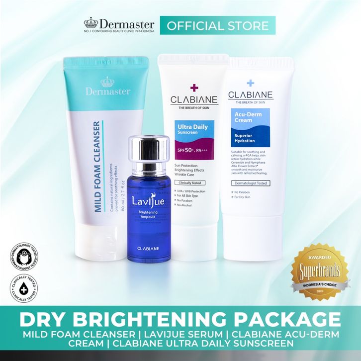 SKINCARE DERMASTER DRY BRIGHTENING PACKAGE ORIGINAL SET 4PCS PERAWATAN MENCERAHKAN MELEMBABKAN MENCEGAH KERUTAN DI WAJAH