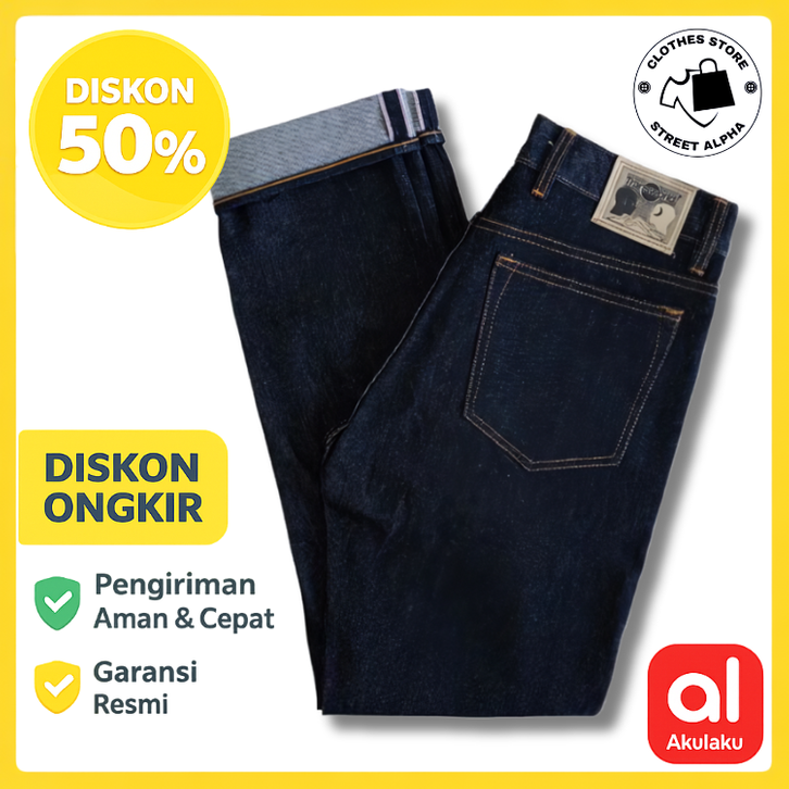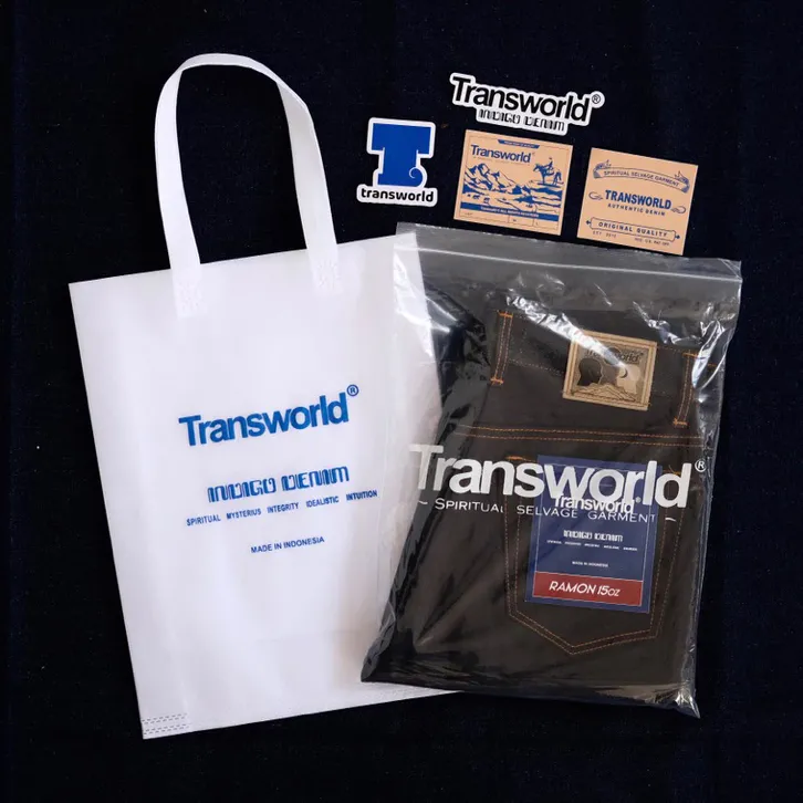 Celana Panjang Pria Dewasa / Celana Jeans Pria Transworld Celana Denim Selvedge 15 Oz Kaku Accent Black Indigo Art Ramon