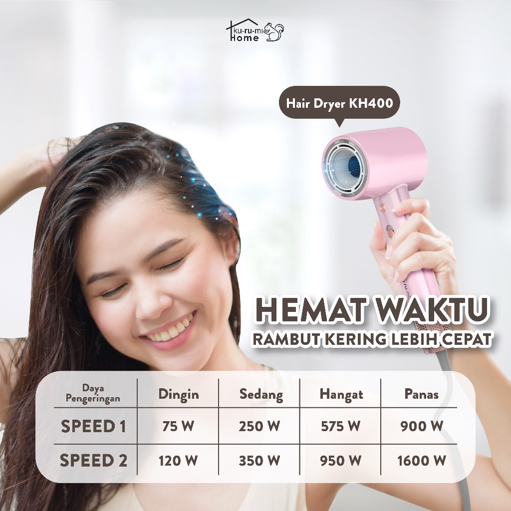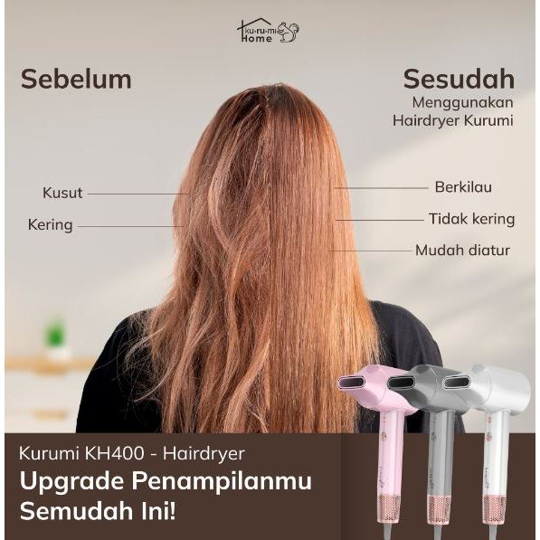 Hair Dryer Pengering Rambut Kurumi Home KH400 Grey White Pink
