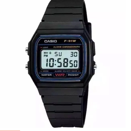 Casio F-91W-1D / F-91W-3D / F91W-1DG / F91WG-9Q Jam Tangan Pria Digital Karet Hitam
