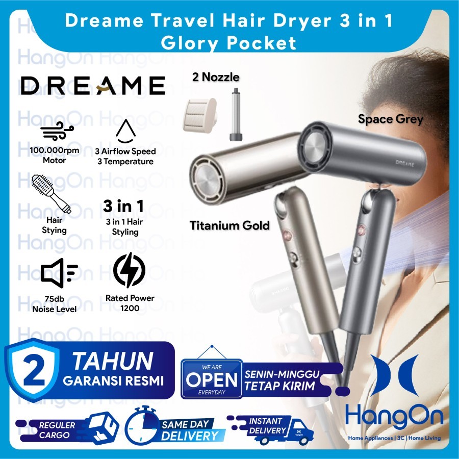 Hair Dryer Portable 3 in 1 Dreame Glory Pocket Travel Stylus Curly Pengering Rambut