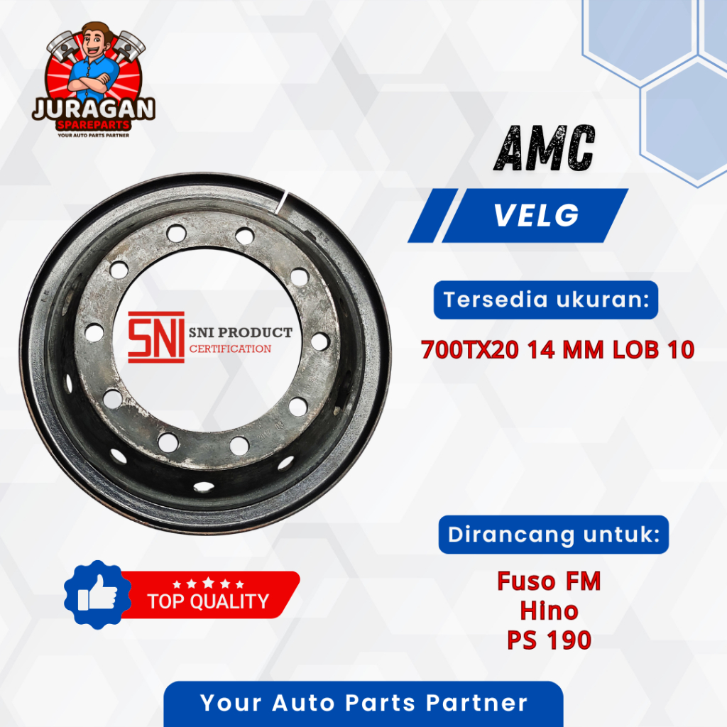 Velg Mitsubishi Fuso FM Hino PS190 700TX20 14mm Lubang 10 - Merk AMC