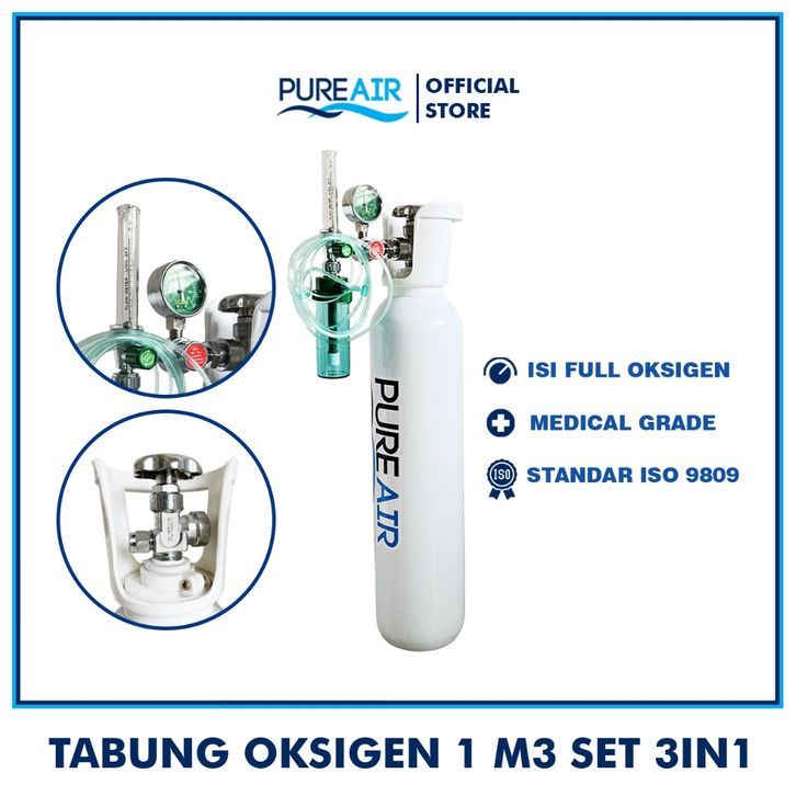 PUREAIR TABUNG OKSIGEN 1 M3 SET 3IN1 (ISI OKSIGEN + REGULATOR + SELANG PERNAFASAN) ORIGINAL OFFICIAL STORE