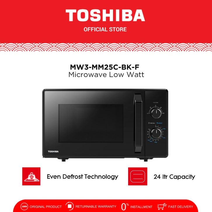 Toshiba Microwave 25L Low Watt MW3-MM25C(BK)-F – Hemat Listrik, Knob Control, Matte Black