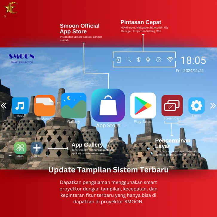 SMOON320 SMART PROYEKTOR LCD TV - INCLUDE HDMI - GOOGLE STORE - ANDROID - NETFLIX - YOUTUBE - WIFI - 240ANSI