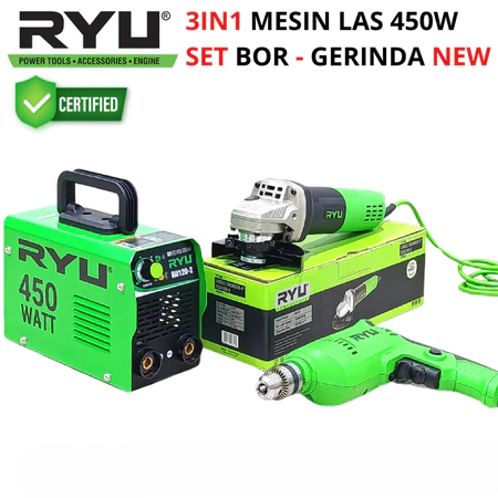 PAKET Hemat 3 ITEM Mesin Travo Las Listrik RII 120-2 450 watt Mesin Las 450 Watt RYU 120a Trafo Travo Las + Mesin Gerind