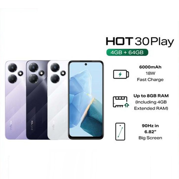 Infinix Hot 30 Play | 4/64 | OS Android | Chipset Mediatek Helio G37 | Baterai 6000 mAh | Garansi