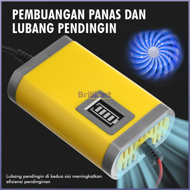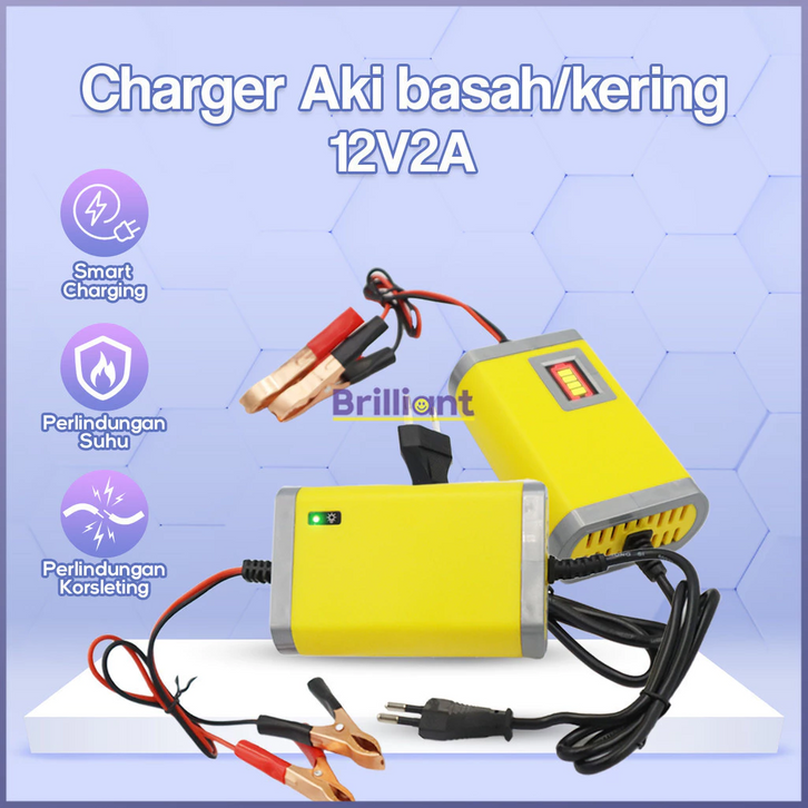 Charger Aki Portable 12V 2A Casan Accu Motor Mobil Sparepart Motor Listrik Colokan Indikator LED