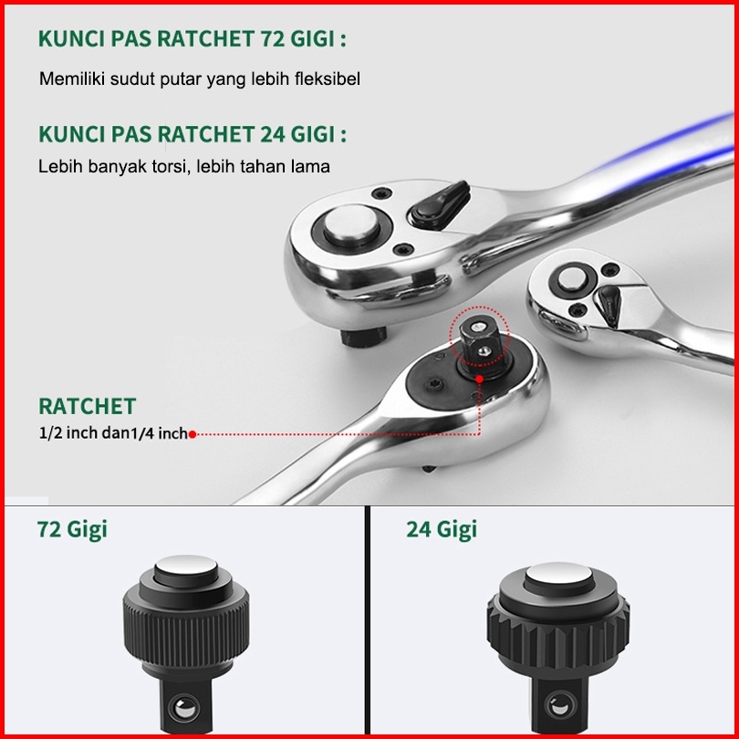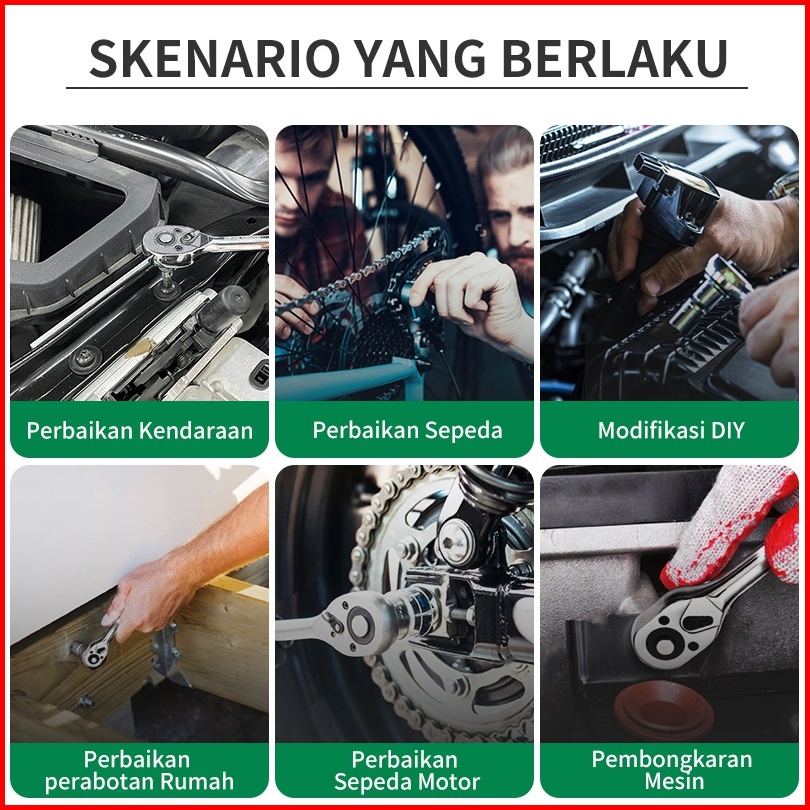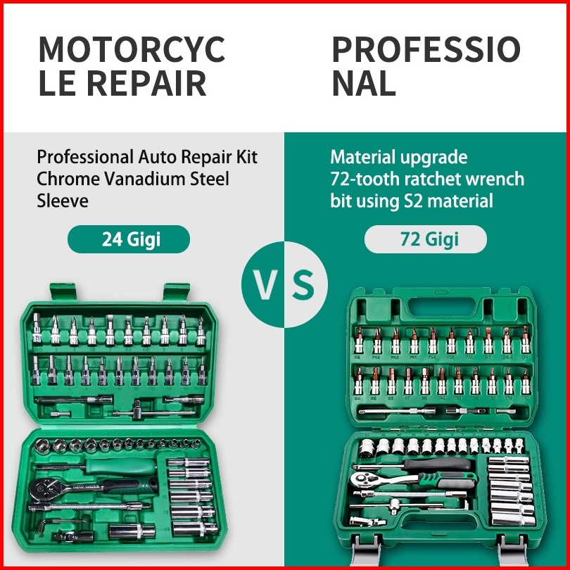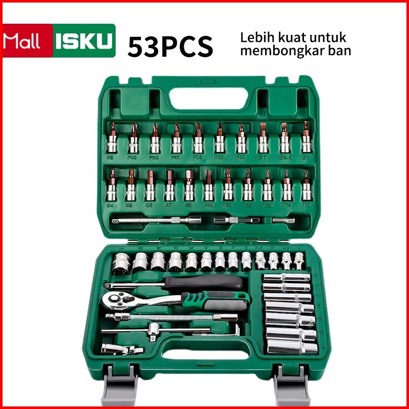 Isku Kunci Shock Set Kunci Mata Sok 53 Pcs Set Socket 1 4 Full Tool Kit Alat Perbaikan Mobil Set