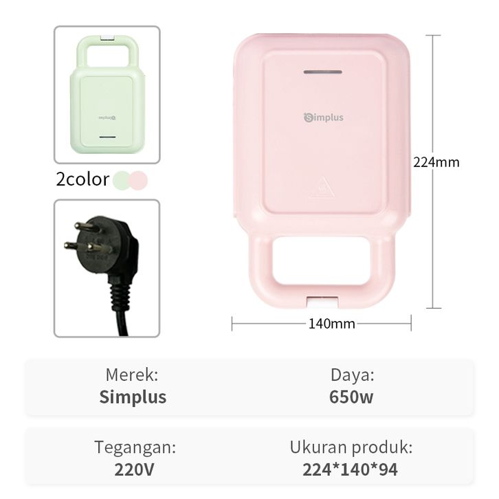 Mesin Pemanggang Roti Listrik Anti Lengket Simplus Sandwich Maker Low Watt