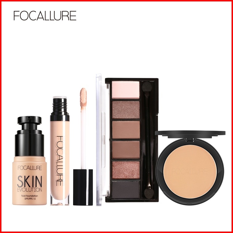 Focallure 4pcs Professional Makeup Set Eyeshadow Palette Foundation Pressed Powder Concealer