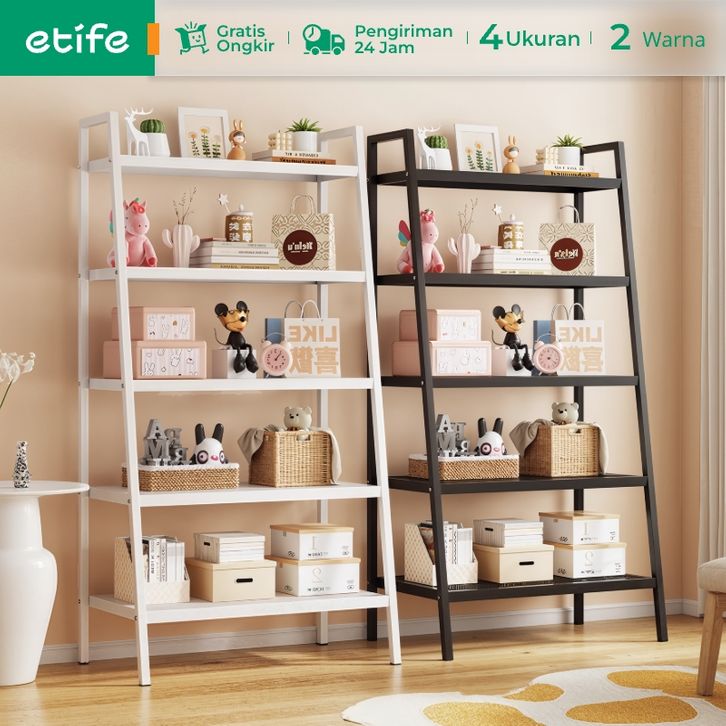 E-TIFE Rak Buku Rak Ruang Tamu Serbaguna Rak Buku Minimalis Aesthetic Rak Besi Rak Bunga