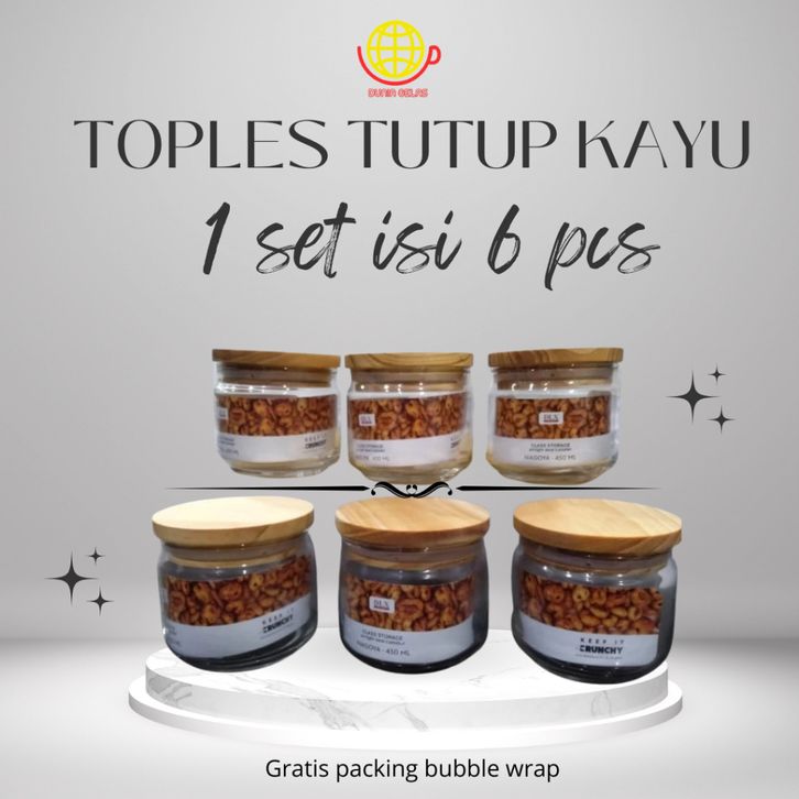 1 SET ISI 6 PCS Toples Kaca Nagoya 450 ml/Set Toples Permen 450 ml/Set Toples Kaca Murah/Set Toples Kacang Ready Stock