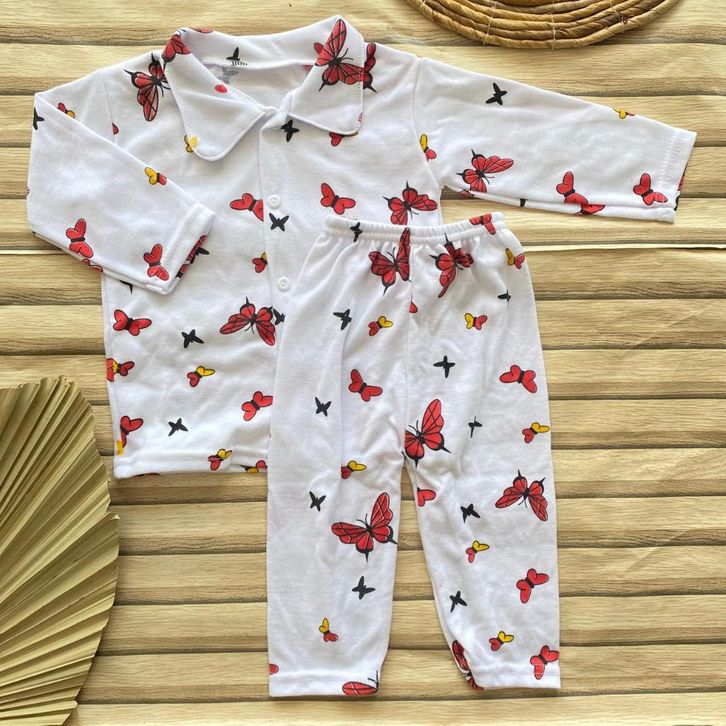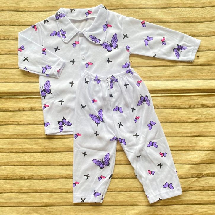 Setelan Baju Anak Piyama Bayi Perempuan Lengan Panjang Kancing Depan Usia 3-12 Bulan Setelan Baju Bayi Best Seller