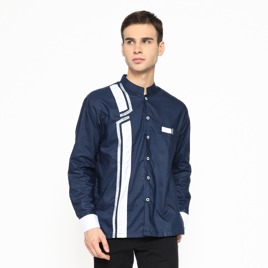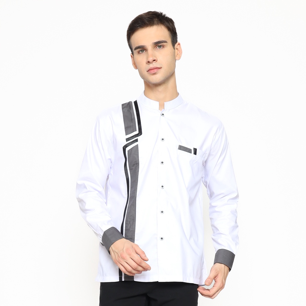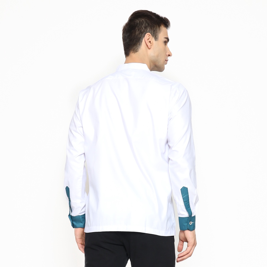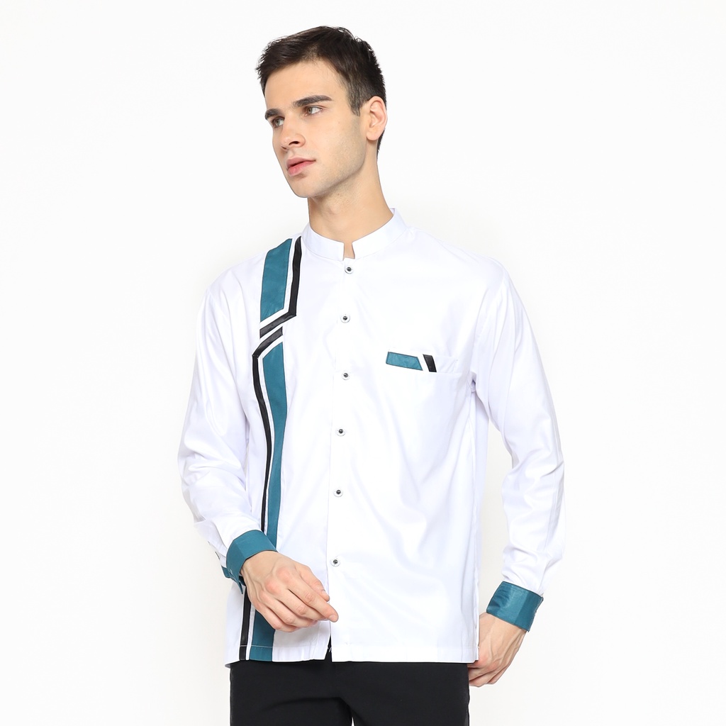 [PROMO] Asakhi - Baju Koko Pria Muslim Lengan Panjang Koko Hadroh Azzahir Motif Petir Warna Putih kombinasi Tosca M L XL
