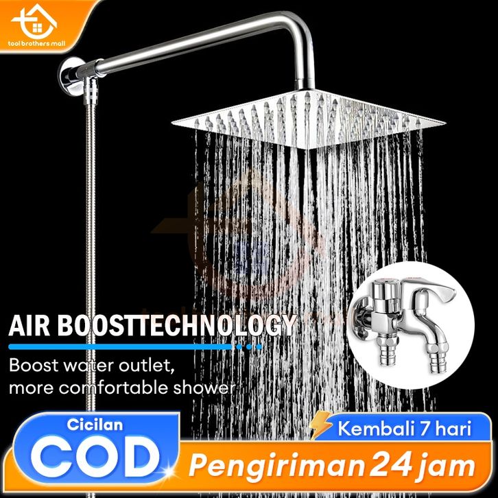 Shower Kamar Mandi set Stainless steel yang dipasang di dinding+ Keran Cabang / Khusus untuk kamar mandi Mur