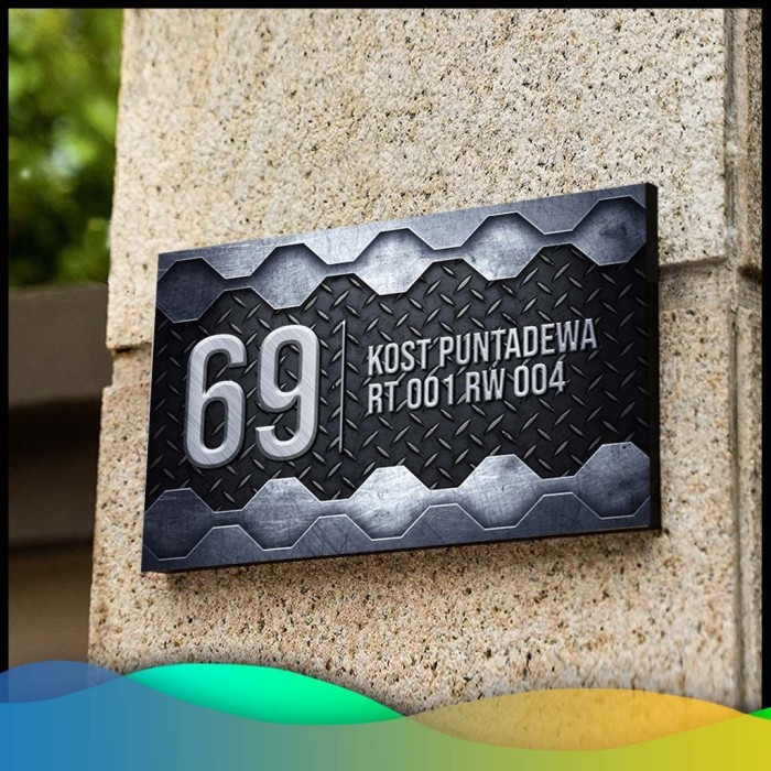 NOMOR RUMAH AKRILIK METALIC / NOMOR RUMAH MOTIF METAL STIKER MURAH - MTL-01