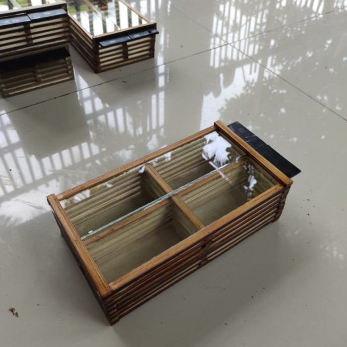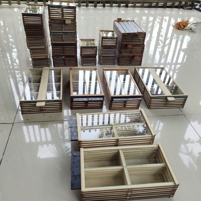 KANDANG JANGKRIK ISI 4 KAMAR EKSKLUSIF TUTUP KACA - COKLAT PLISTUR