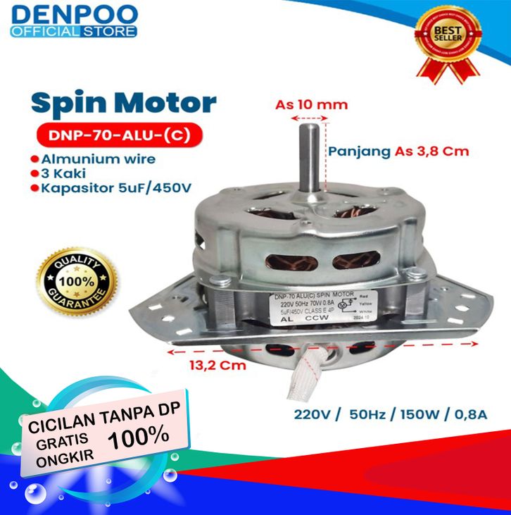 TERBAGUS DENPOO DINAMO SPIN/PENGERING MESIN CUCI AS 10 MM-DNP-70-ALU (C)