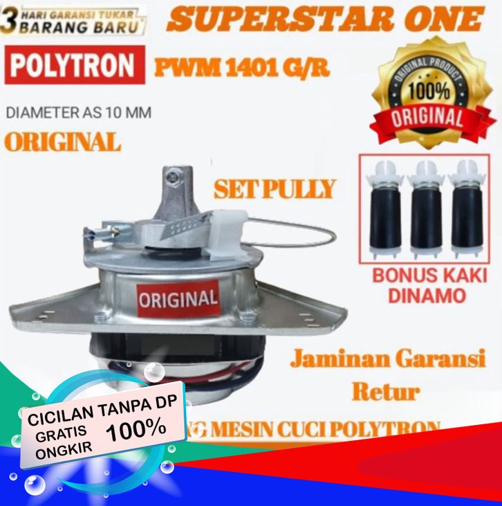 TERBAGUS DINAMO PENGERING MESIN CUCI POLYTRON PWM 1401 G / R SET PULLY