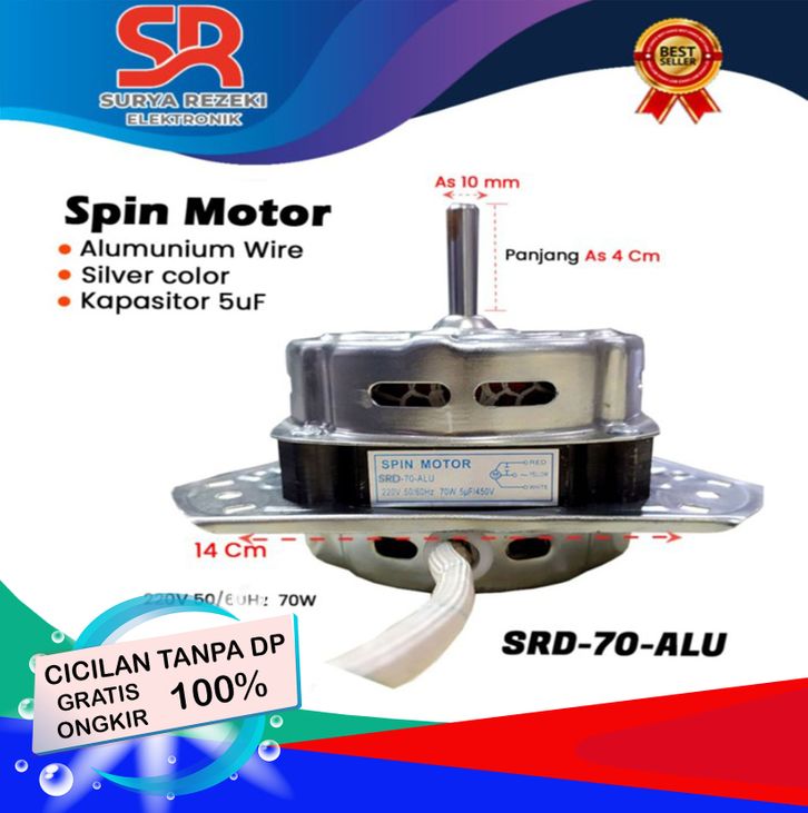TERBAGUS DINAMO SPIN MESIN CUCI GULUNGAN ALUMINIUM AS10MM-SRD-70-ALU