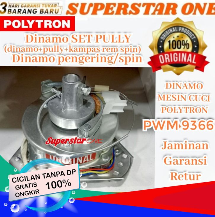 TERBAGUS DINAMO/MOTOR MESIN CUCI SET PULLY POLYTRON PWM-9366/DINAMO PENGERING