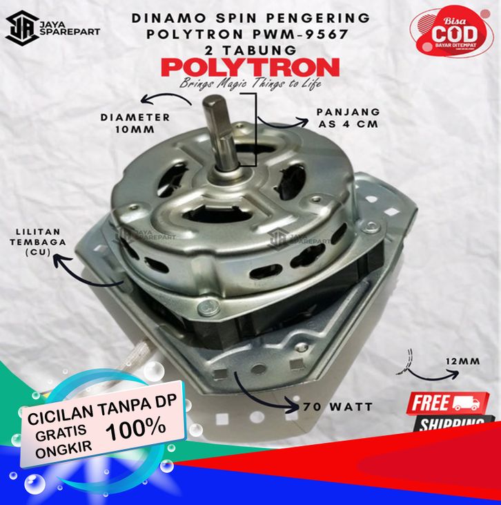 TERBAGUS DINAMO PENGERING POLYTRON PWM-9567 MESIN CUCI MANUAL 2 TABUNG - ALUMUNIUM