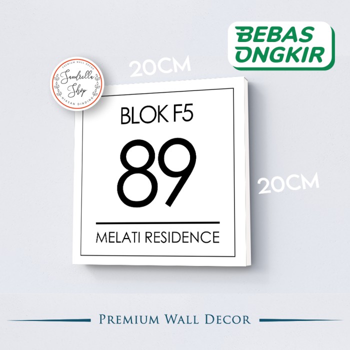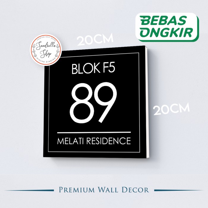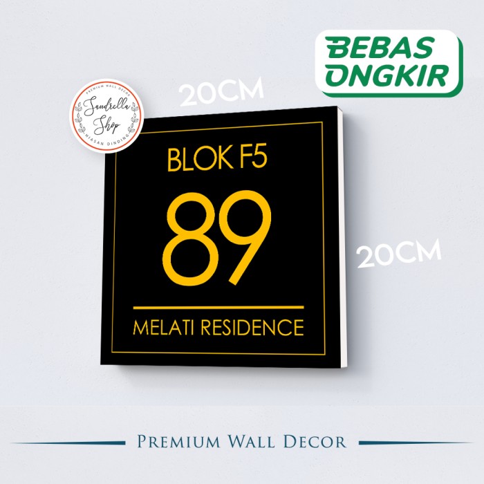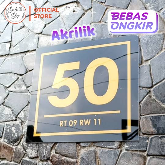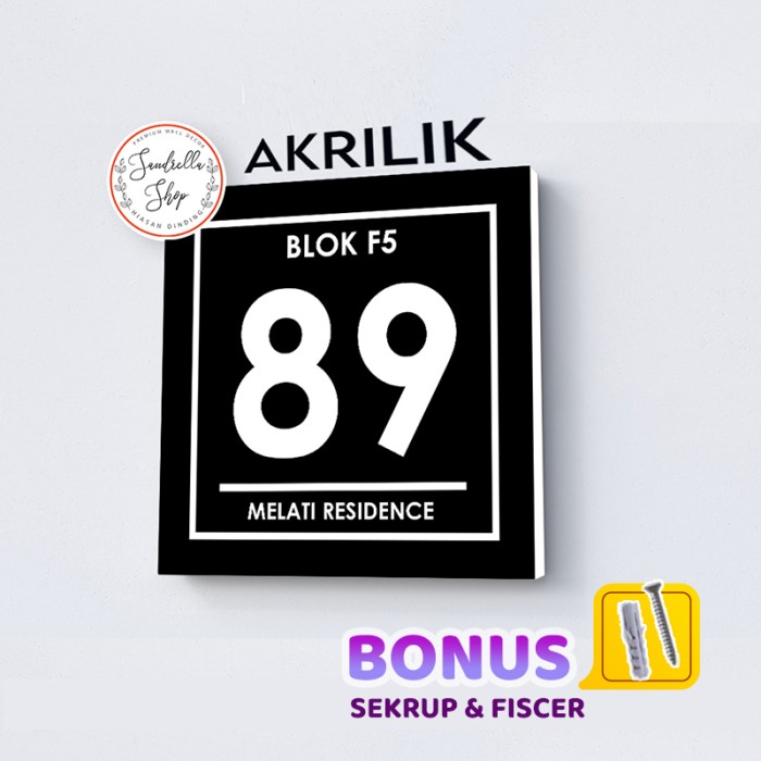 CUSTOM NOMOR RUMAH AKRILIK PAPAN ALAMAT NOMER RUMAH ACRYLIC AKMNR3 - MNR4+SEKRUP, 10X10CM