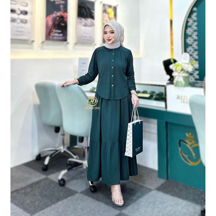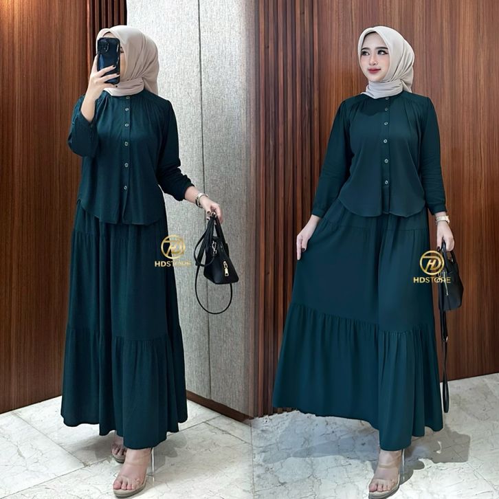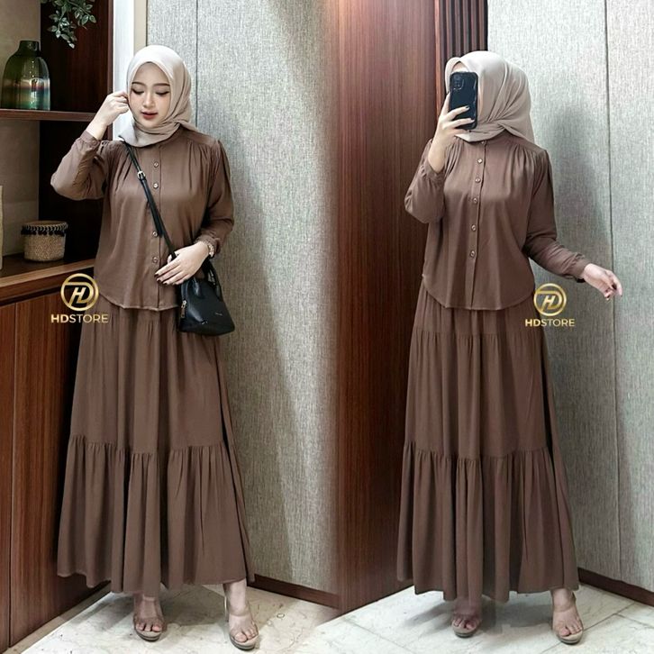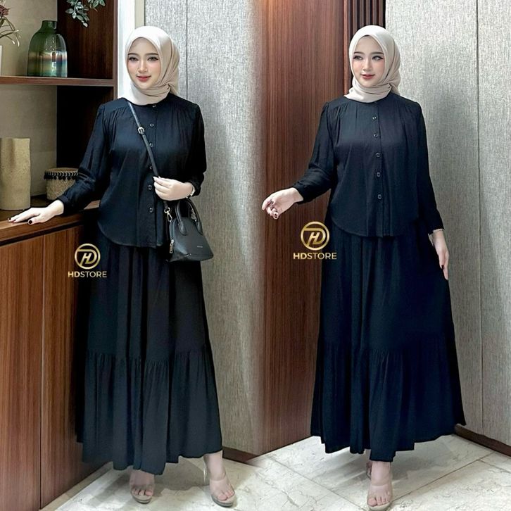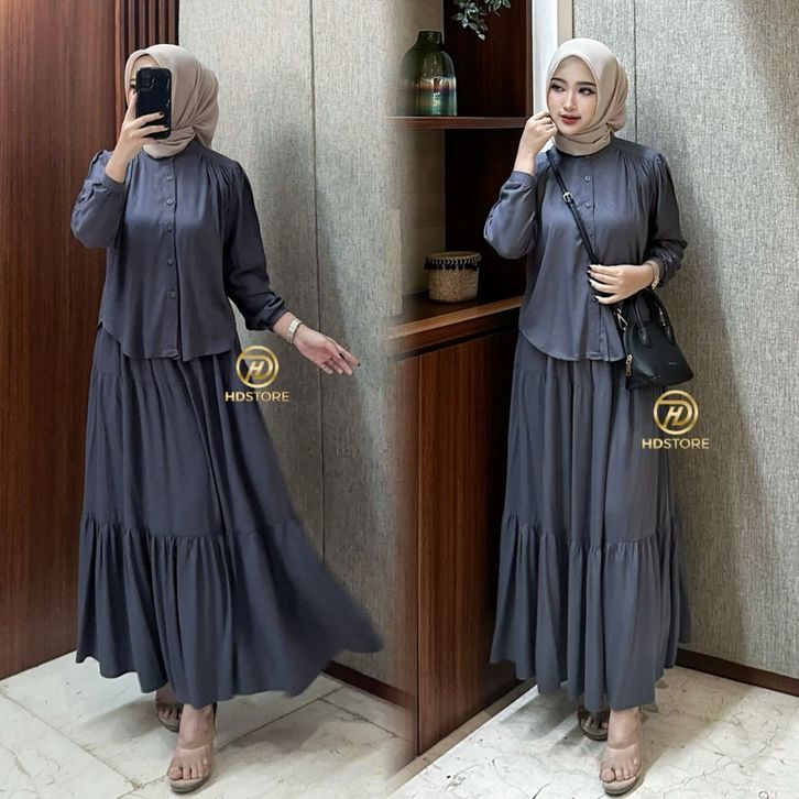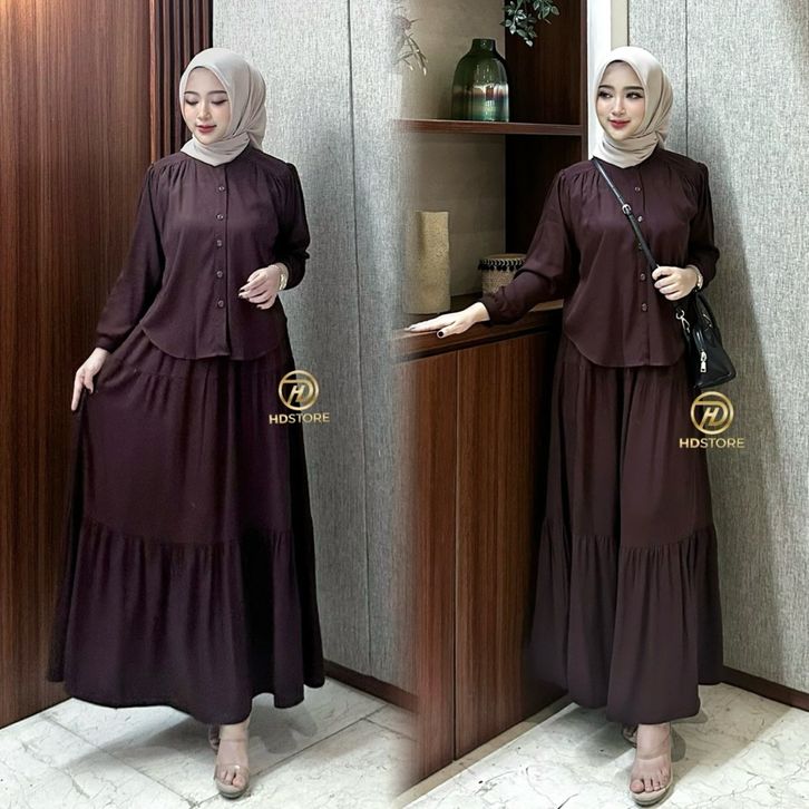 Oneset Rok Rayon Twill Polos Claudia Set Rok 2in1 Setelan Wanita Jumbo Set Rok Dan Blouse Kancing Busui Friendly
