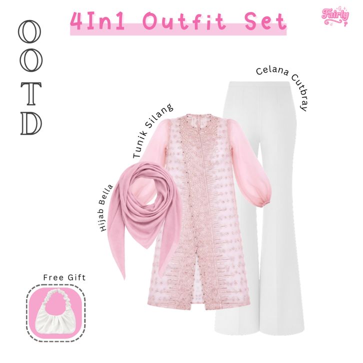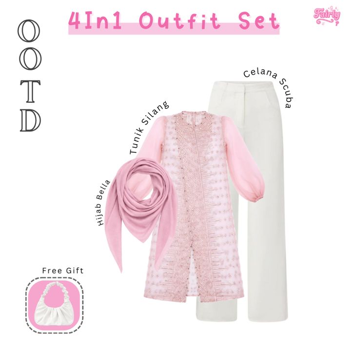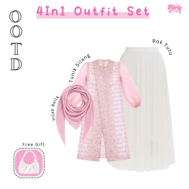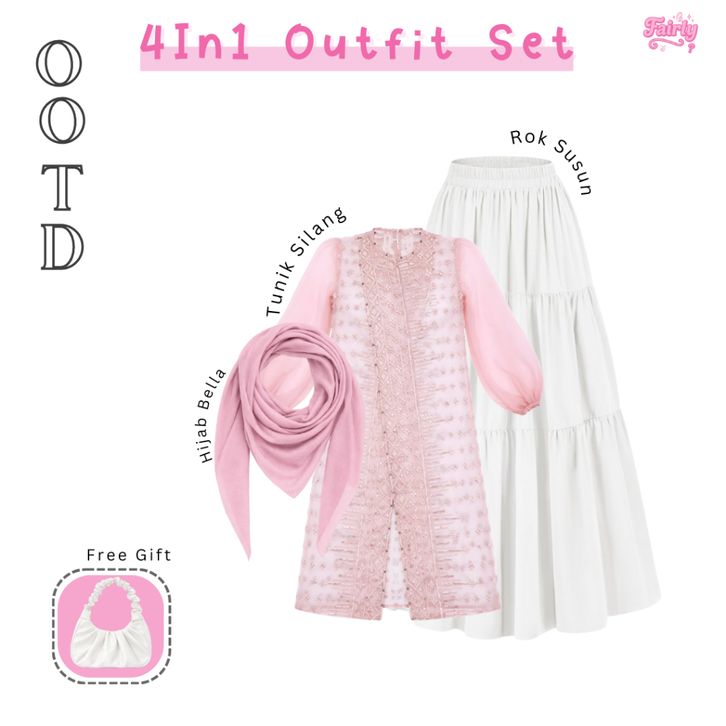 Lini Setelan OOTD 4in1 Wanita Remaja Bella Square + Tunik + Rok Setelan Lebaran Remaja FS57