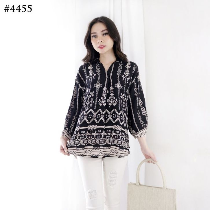 Atasan Wanita VNeck RAYON ETNIK Abstrak Terbaru JUMBO LD 110 120 130 CM BIG SIZE XXXXXL 5XL 4455