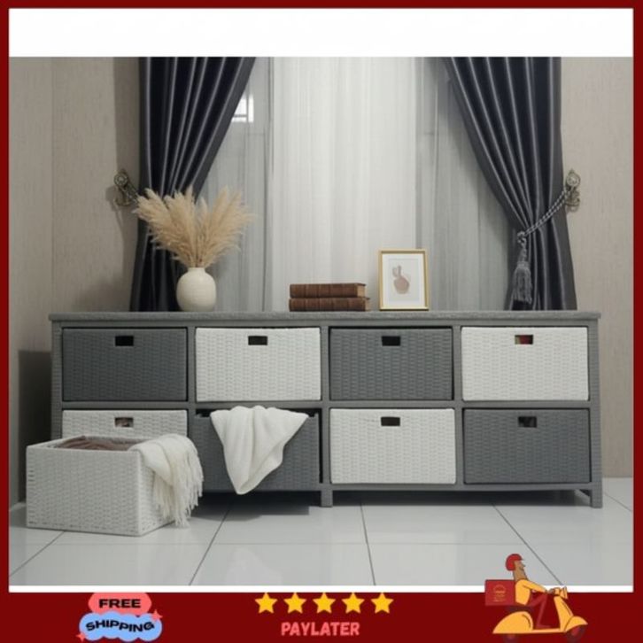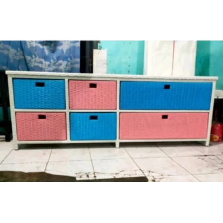 Lemari Rotan Warna Warni Lemari Rotan Sintetis Laci 6 Samping Rak Buku Susun Lemari Plastik