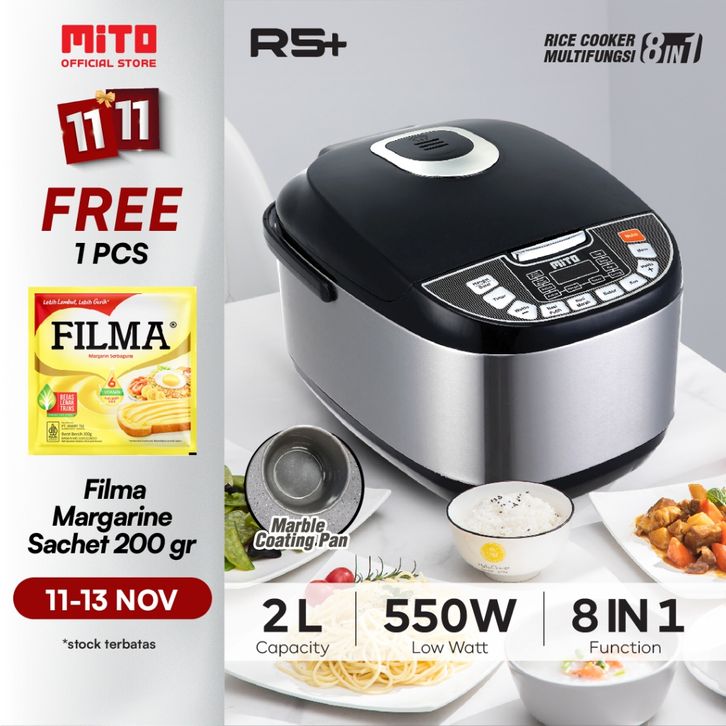 MITO Digital Rice Cooker R5+ Magic Com Penanak Nasi 2L Black Silver Original