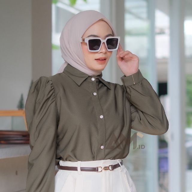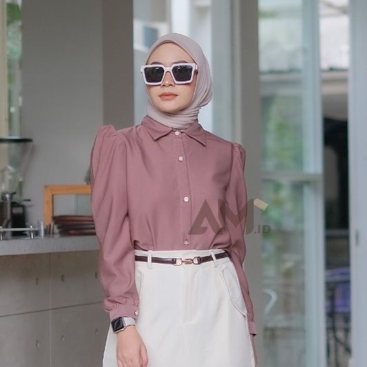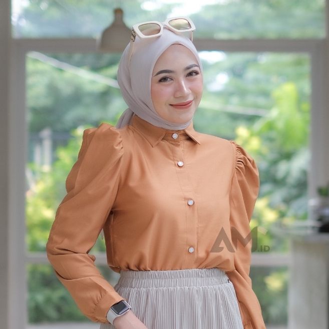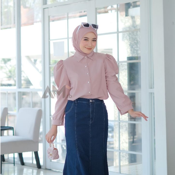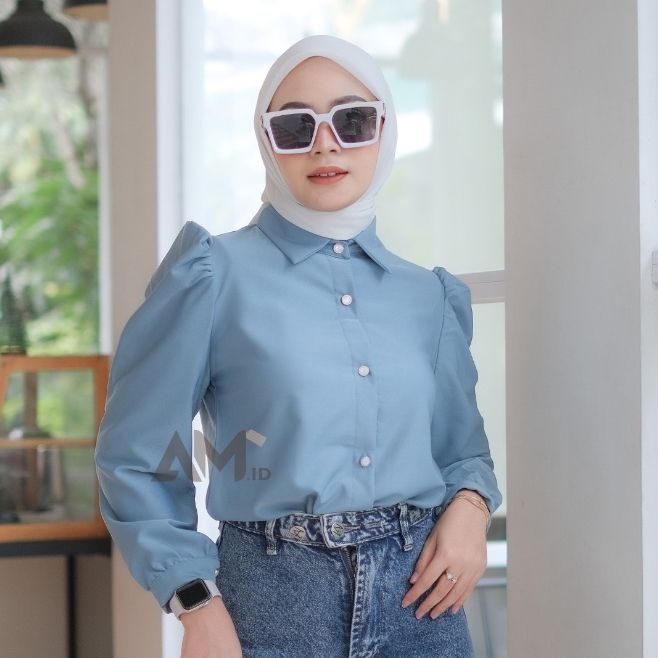 Atasan Kemeja Wanita Kekinian Hyeri Shirt Top Katun Madonna Baju Atasan Wanita Jumbo Lengan Panjang Kemeja Remaja Wanita