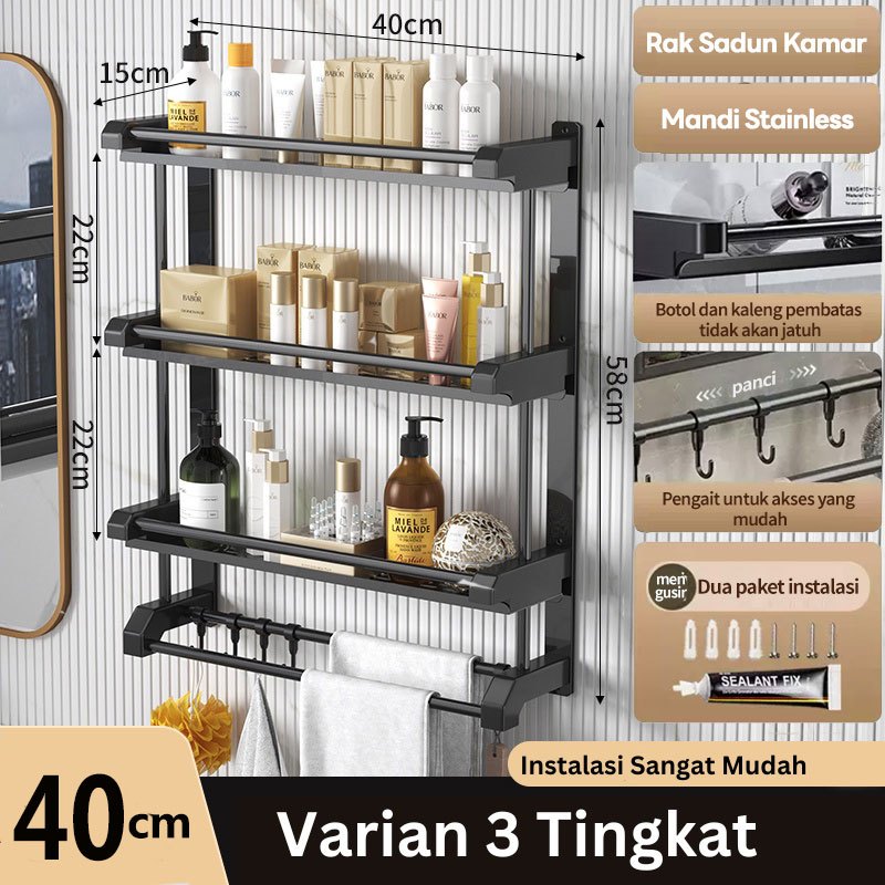 Rak Kamar Mandi Stainless anti karat Rak Sabun Kamar Mandi HitamDinding Gantungan Handuk kamar mandi