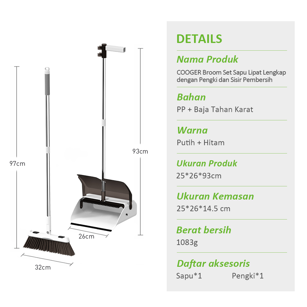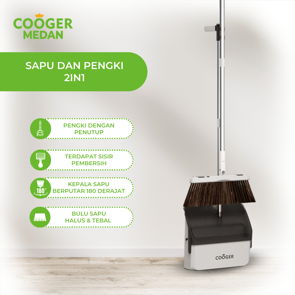 COOGER MEDAN Sapu dan Pengki Set Sapu Serbaguna 2 IN 1 Pengki Lipat Besar Dilengkapi Sisir Sapu Lantai Broom and Dustpan 2 IN 1