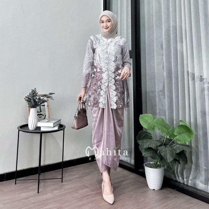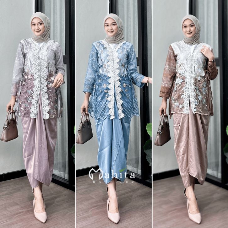 One Set Wanita Kekinian Maiza Tulle Gardenia Kebaya Kondangan Wanita Modern Mix Renda Full Chantily Kebaya Wisuda Modern
